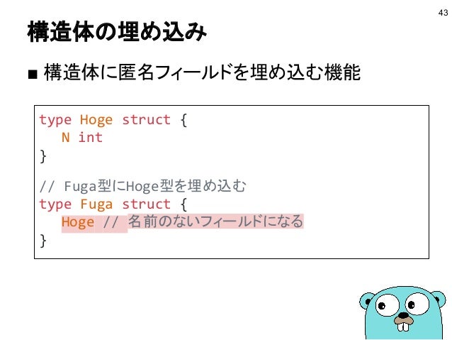 Go言語 埋め込みによる構造体の継承 Hakeの日記